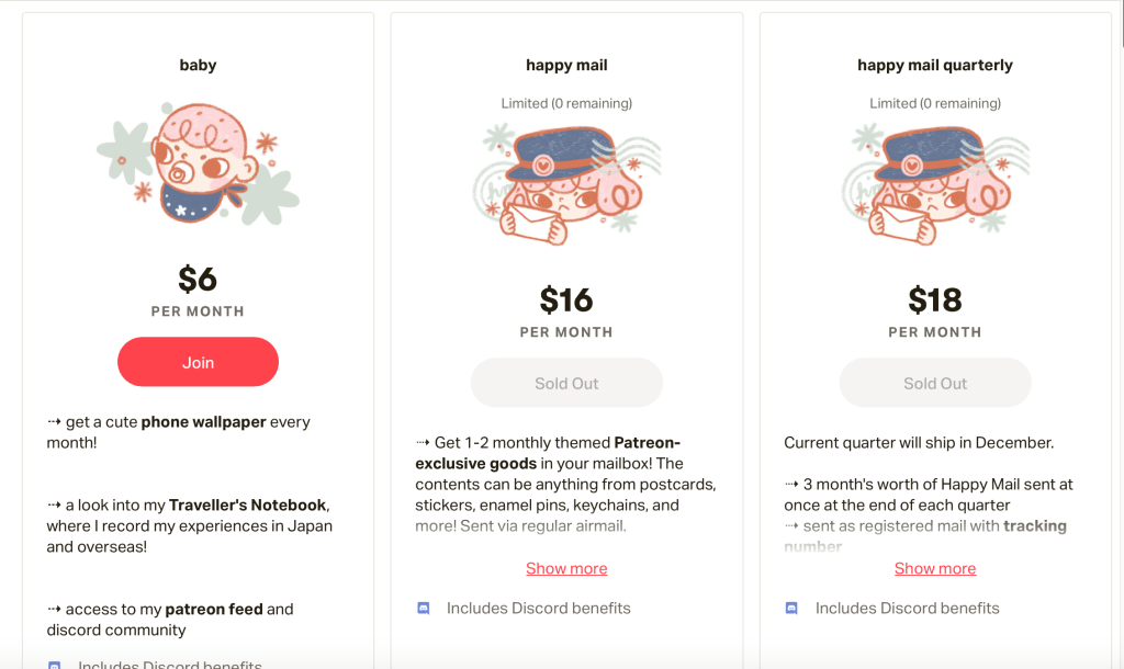 I will be exploring the ways that Patreon and its services are provided to both the subscriber and the content creator on both ends of the spectrum. For the restrictions set for creators looking to sell subscriptions, there are three tiers that require different monetary price. For example, the tiers are “Lite”, “Pro”, and “Premium”. The Lite tier is for those who are looking to focus on growing their fanbase. The Pro tier is for those who are looking to build and grow an existing business with simple tools. Finally, the Premium tier is for those who have already established and thriving businesses and looking to provide further subscription methods. Each of these tiers are only made available to content creators through different ways of payment. However, the resources available to creators are all accessible, with different communities geared towards each person’s specialty. The most restricted access are presented towards the subscriber who browse different creator pages and look to subscribe to certain tiers themselves. This system is so unique, particularly due to the fact that the creators can set prices and contents within each tier that they make available. For example, in the visual art category, a creator named Love Soup has 406 patrons, all distributed throughout three different tier levels. For example, the first tier is set for $6 per month, then jumping to $16 and $18. The more expensive tiers are for those that subscribe for physical copies of art prints and goods, and for those that are international. The demographics within the subscribers groups also play a huge part within this subscription service. Patreon can prove to be a great way for content creators to promote themselves and establish business, while subscribers can work to support these creators and branch out to different communities. With both subscribers and creators working together, patreon purely relies on these two groups of people in the e-commerce world, navigating price restrictions and different resources based on price and devotion.