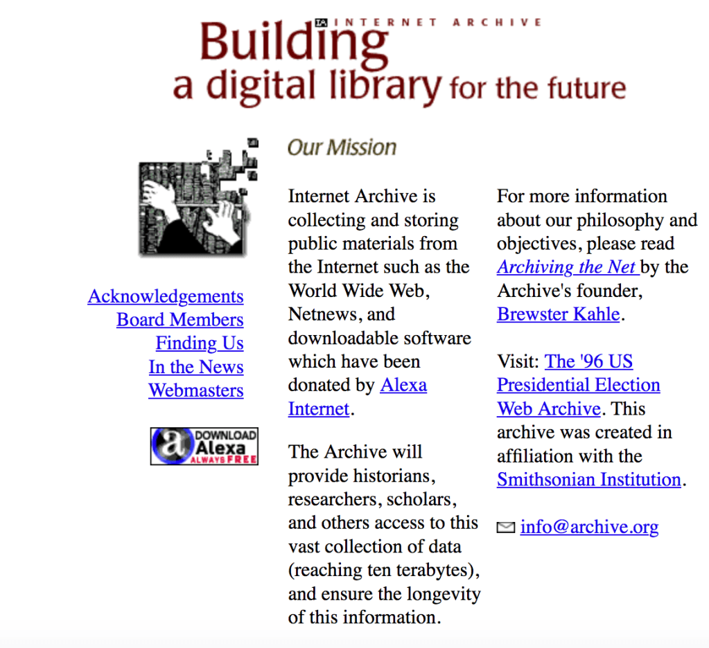 Many websites’ history has been studied. But what about the website that allows us to understand Internet history itself, the Internet Archive? How has it come to be what it is now? How has the Internet Archive evolved to better achieve its goal from its foundation to now?