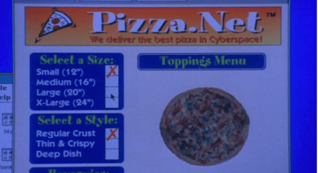 PizzaNet customizable order form from “The Net” (1995) (Novak, 2013)