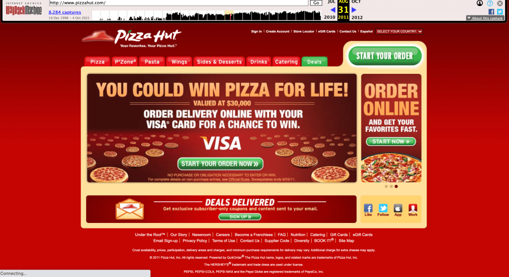 “Pizza Hut.” Accessed October 8, 2021. https://web.archive.org/web/20110831201758/http://www.pizzahut.com/.