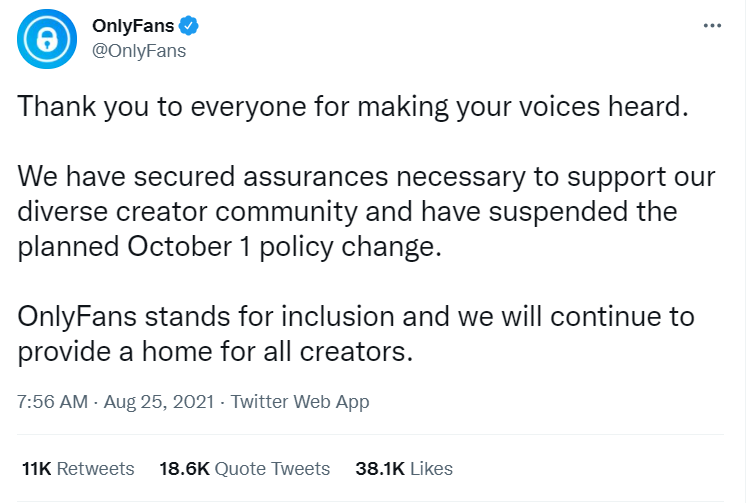 The backlash received by OnlyFans on their policy change was immense. The main platform contributors were suddenly at risk of losing their source of income. However, a few days after their initial announcement, the banks themselves emphasized their support regardless of the content, and only then did OnlyFans retract their changes.