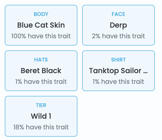 Each NFT Cat’s background represents the rarity of the cat. These cats are generated by having features for the body, face, hats, shirt, and tier randomly combined to form a different styled cat. Cool Cats claims to have 300,000 total combinations of Cats, but have only released 9,999. Thus, certain Cats have features that are rarer to find than others. The rarity of the combination of features is represented by the color of the background.