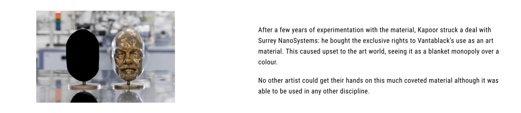 Another color monopoly story is about Anish Kapoor and Vantablack: