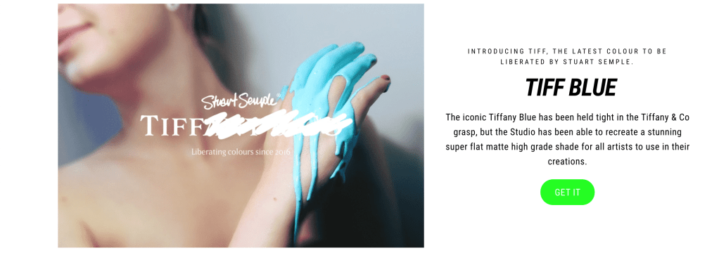 This year, Stuart Semple and his team created “Tiff Blue” and “Easy Klein”, and sell them at very cheap prices, “paying tribute” to Tiffany Blue and Klein Blue.