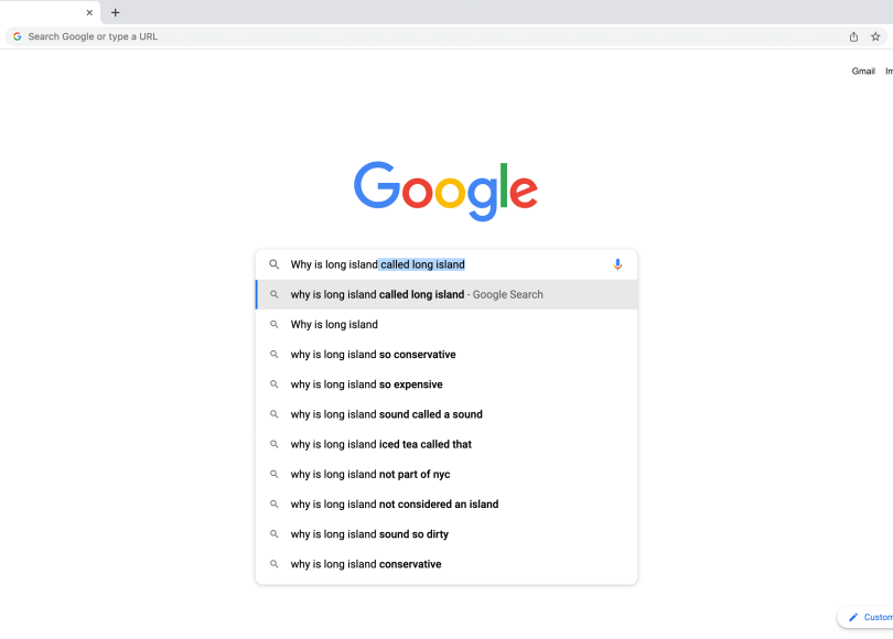 To obtain my results, I used a combination of searches from Google, Bing, and Yahoo. Something I was not aware of was how the “algorithms” that drive these engines work. In the Introduction of Algorithms of Oppression, Safiya Umoja Noble clears up a misconception that the algorithms used are strictly mathematical. She reminds us that humans are still behind everything and hold their own values, which leads to oppression and unneutral results. What I discovered was that these popular search engines were similar in some respects, but at the same very different from each other. The most popular autosuggestions, that stayed constant between search engines, were “Why is Long Island called Long Island”, “Why is Long Island so expensive” and something to do with political viewpoints on the Island. These results did not surprise me too much as Long Island isn’t considered an island at all, most of Long Island is known to be expensive and politics in all areas are debated constantly. Although the results I came across were “good” as a whole, there was one negative I found. In my Yahoo results there was a suggestion that read, “Why is Long Island racist”. Why did the algorithm at Yahoo decide to keep this in the suggestions, while the other search engines seemingly kept all their results positive.