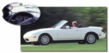 Figure 2:Tim driving his ’95 Miata and some of the modifications