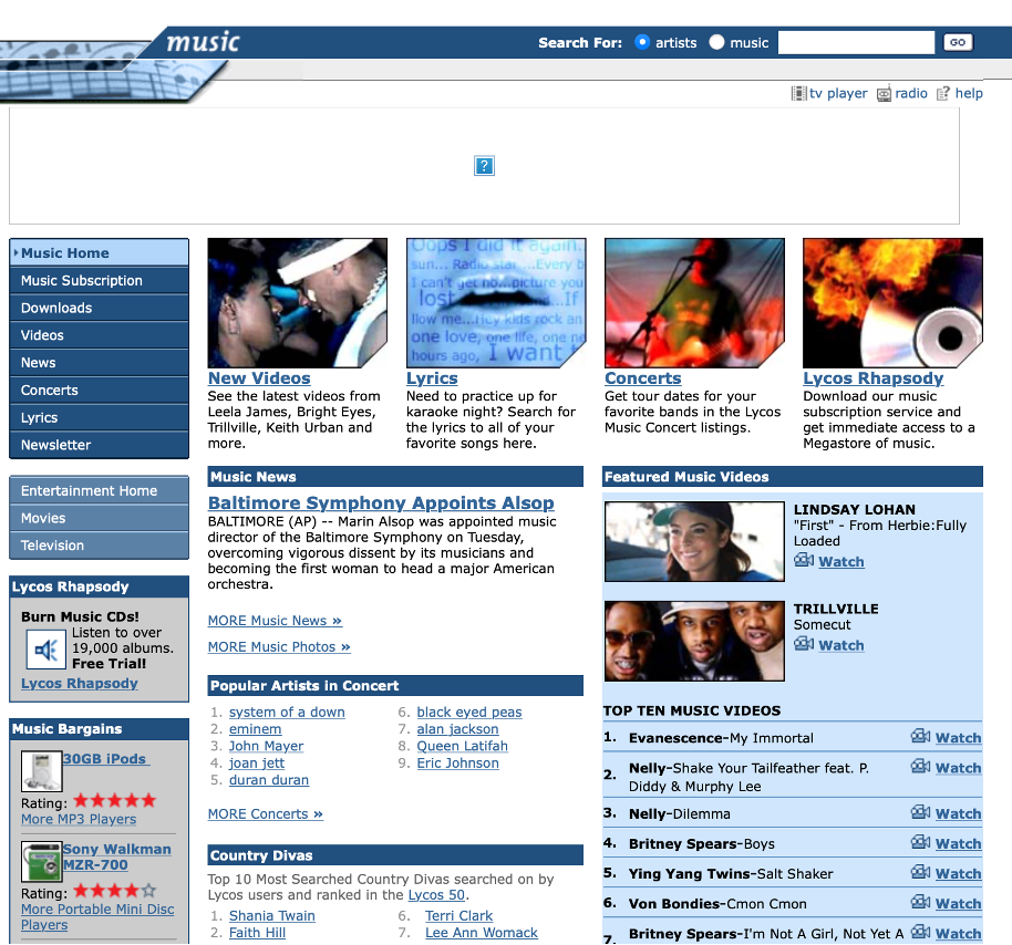 MP3 Lycos were free to continue providing mp3 search and sharing services to their users. Over the course of seven years, the website evolved to offer music-related news and music videos in addition to their music sharing service. The user interface adapted to make MP3 Lycos more than a file sharing service, but a hub for all things music-related. However, in late 2005, the option to download music suddenly vanished from the website. If it wasn’t legal pressure that directly led to this change, then what was it?