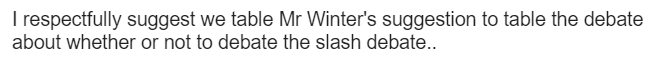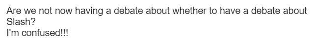 Clearly, the general consensus was that the “slash debate” was decidedly not over.