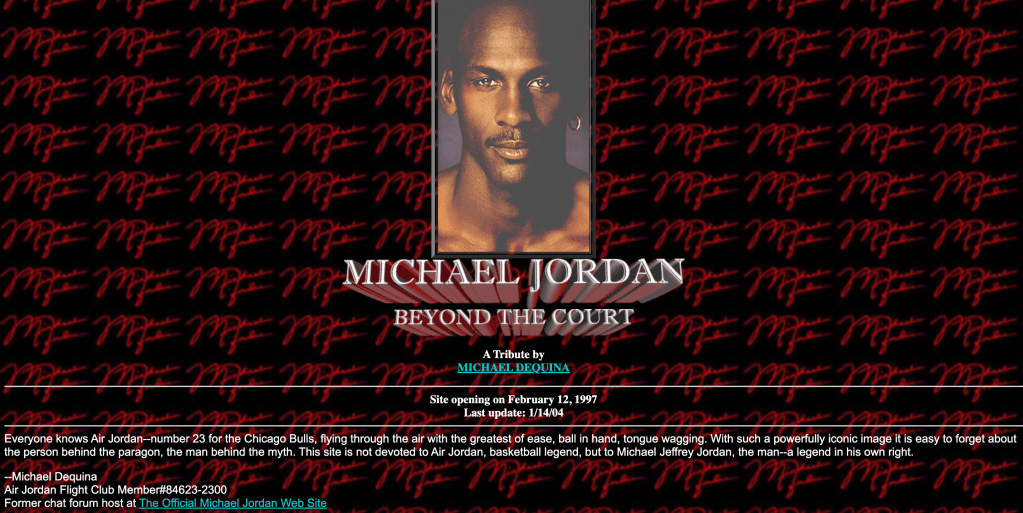 The genius of Michael Dequina’s page comes from the wide-ranging audience who can identify with it. Sure, most of the world at the time knew who Michael Jordan, the basketball player, was, but EVERYONE knew Michael Jordan, the superstar. Dequina’s site appeals to a wide range of 1990s pop culture enthusiasts. Jordan’s ventures into fashion, cinema, television, and advertising are all covered on the site. Those interested in pop culture will find this examination of Jordan’s influence outside of sports exciting and appealing. Sections such as “Family Man” and “Just Michael” make an effort to humanize Jordan beyond his athletic persona. This displays an appreciation for Jordan’s individuality that visitors to the page can consume. It represents the life of Michael Jordan, not just the basketball player.