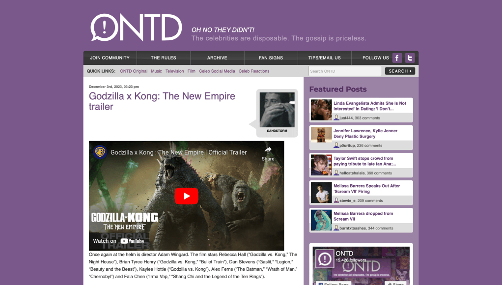 At the time of its creation, LiveJournal was one of the only websites on the internet that allowed users to freely express themselves, as the online diary allowed users to share their feelings, thoughts, life events, and other aspects of their own identity. In 2002, David Gallagher of the New York Times referred to LiveJournal as “a site to pour out emotions, and just about anything else” (Gallagher). As each user maintained their own individual profile, it was feasible for LiveJournalists to create their own online persona, and shape that identity in any way that they saw fit. For example, George RR. Martin (whose novels inspired the Game of Thrones TV series) was widely considered LiveJournal’s greatest content generator. The platform allowed Martin to not only bolster his identity as a respected novelist, but also to create a thriving online presence beyond just his literary works. Another way that LiveJournal enabled users to shape their identities was through its communities. These communities were based on one specific topic, and users would create entries that were related to it. Through the creation of communities, LiveJournal helped users to share a common identity with thousands of other people who they likely have never met before, nor ever will. This sense of connection or belongingness was very attractive for many users, as in the early days of the internet there were not many social networking platforms that supported this type of environment. LiveJournal’s most famous community, to this day, is titled “Oh No They Didn’t”. This community centers itself around celebrity/pop culture gossip, and is pictured below. In an era with limited social networking options, LiveJournal cemented itself as a place that could foster a sense of connection with others and in turn, a place where users could explore their own identity formations.