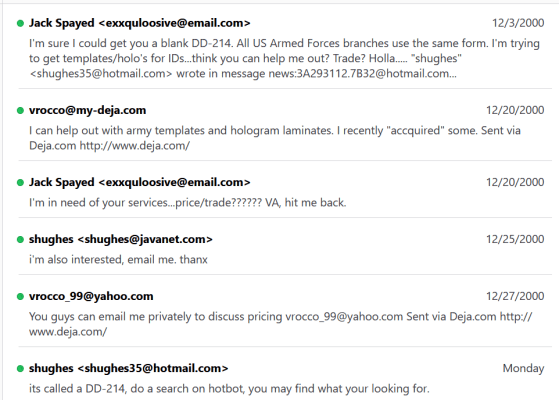 I chose a conversation that is in a Usenet folder titled alt.2600.fakeids. I wasn’t sure what to expect when I