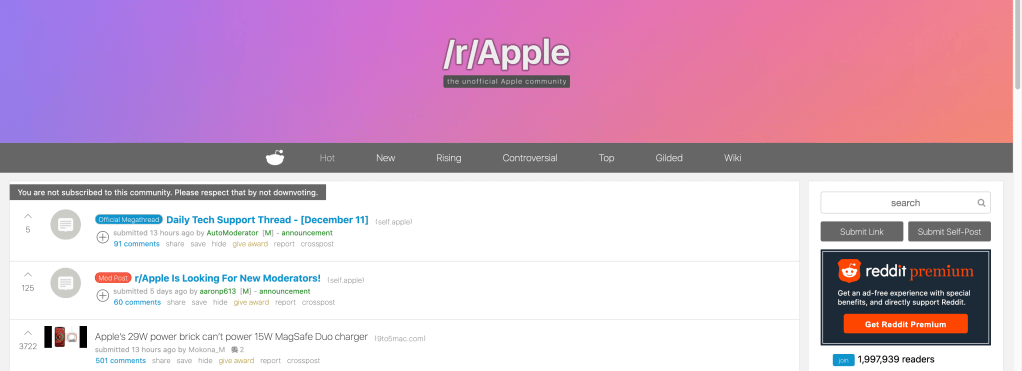 Reddit is a social news aggregation, discussion, and content rating website all in one. Reddit is made up of smaller communities called “subreddits”. Each “subreddit” is basically a webpage where all the contents are about a specific topic. If you have an interest, you will probably find a subreddit dedicated to that interest, no matter how obscure that topic in your head is. Don’t believe me? Just to list a few strangely specific subreddits: birds with arms, bread stapled to trees, screaming fish, and adorable roombas. If you have an obscure interest and can’t find a subreddit for it, no problem: you can just create one yourself!