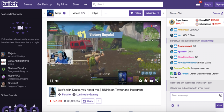 The circuit of culture defines identity as what identities are associated with Twitch. Through their many methods of interaction, Twitch provides unique opportunities for communities to form around streamers. The qualifications for creating content on Twitch being so low allows for countless demographics and identities to thrive on the site. Many streamers start with a following of just a few hundred people and are able to form meaningful connections with many of them while they are streaming daily. As streamers grow in popularity, they tend to lose this sense of community and it becomes more like performing for an audience then spending time with friends. Features like the ability to turn off non-subscriber comments help this, but don’t eliminate the problem. For some streamers, a combination of timing, skill and luck transform them into overnight celebrities. A famous example is Tyler Blevins, also known as Ninja. In 2016, he was a semi-pro gamer working at a fast food restaurant. In 2017, he struck gold when he began streaming himself playing Fortnite. Fortnite happened to see a massive surge in popularity at this time, and within a couple of years, he had amassed millions of viewers, smashing streaming records left and right. He has 226 million views in 2018 alone, making him the most popular streamer on the site. He also set the record for most concurrent viewers on a stream that year with 600,000. Today, he is making almost $1 million each month and is a household name among kids and teenagers. Ninja was the first streamer to become so popular that he broke through the barrier to become a full-fledged celebrity. He has appeared on TV shows, late night shows like Jimmy Fallon, tons of advertisements, and more. Ninja’s success story demonstrates how the way Twitch operates allows anybody with a webcam and a mic to build a loyal following and even become a star.