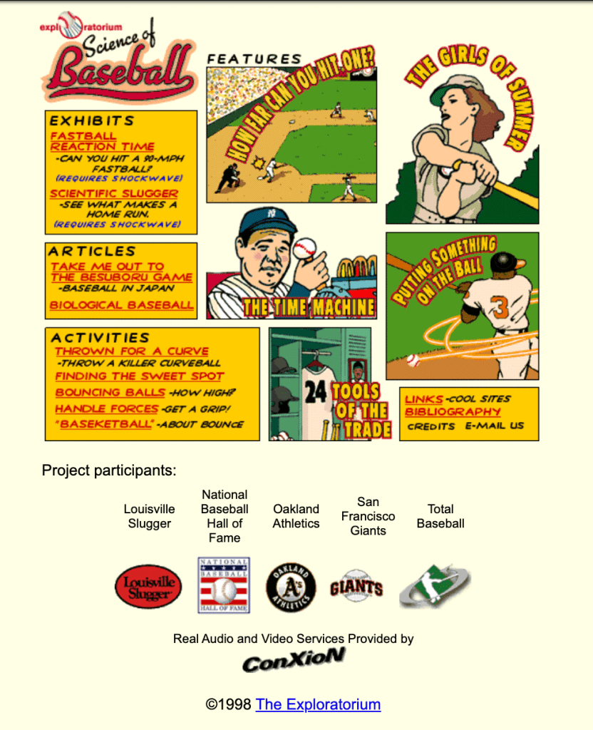 “Science of Baseball.” Exploratorium, February 4, 1999. https://web.archive.org/web/19990204012917/http://www.exploratorium.edu/baseball/. Accessed December 5, 2023.